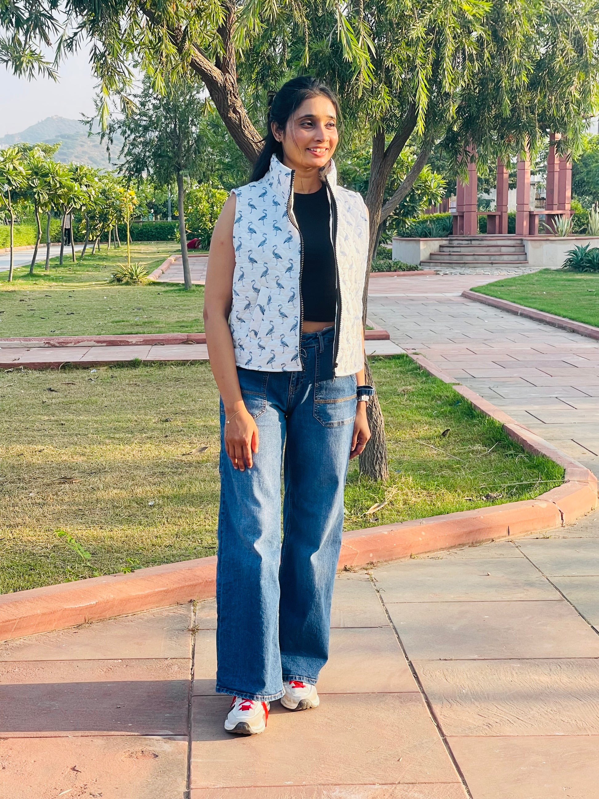Pair it with a white or pastel top and light denim jeans for a fresh, happy look. Add sneakers and small hoops to complete your chic everyday vibe.