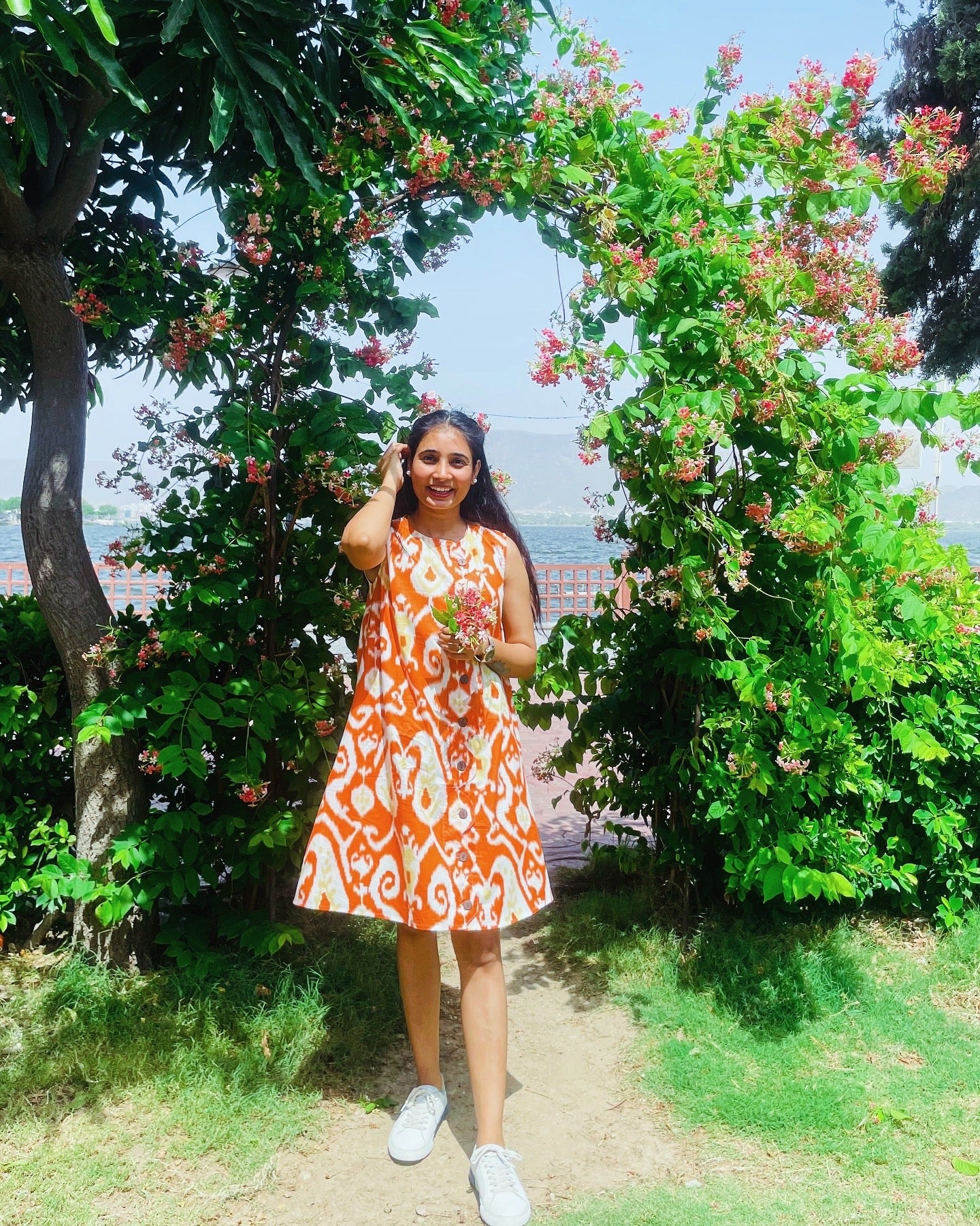 The perfect summer dress. Made front 100% cotton hand block printed fabric, it not only offers a stylish look, but also provides utmost comfort. You can enjoy its vibrant colours wash after Wash.