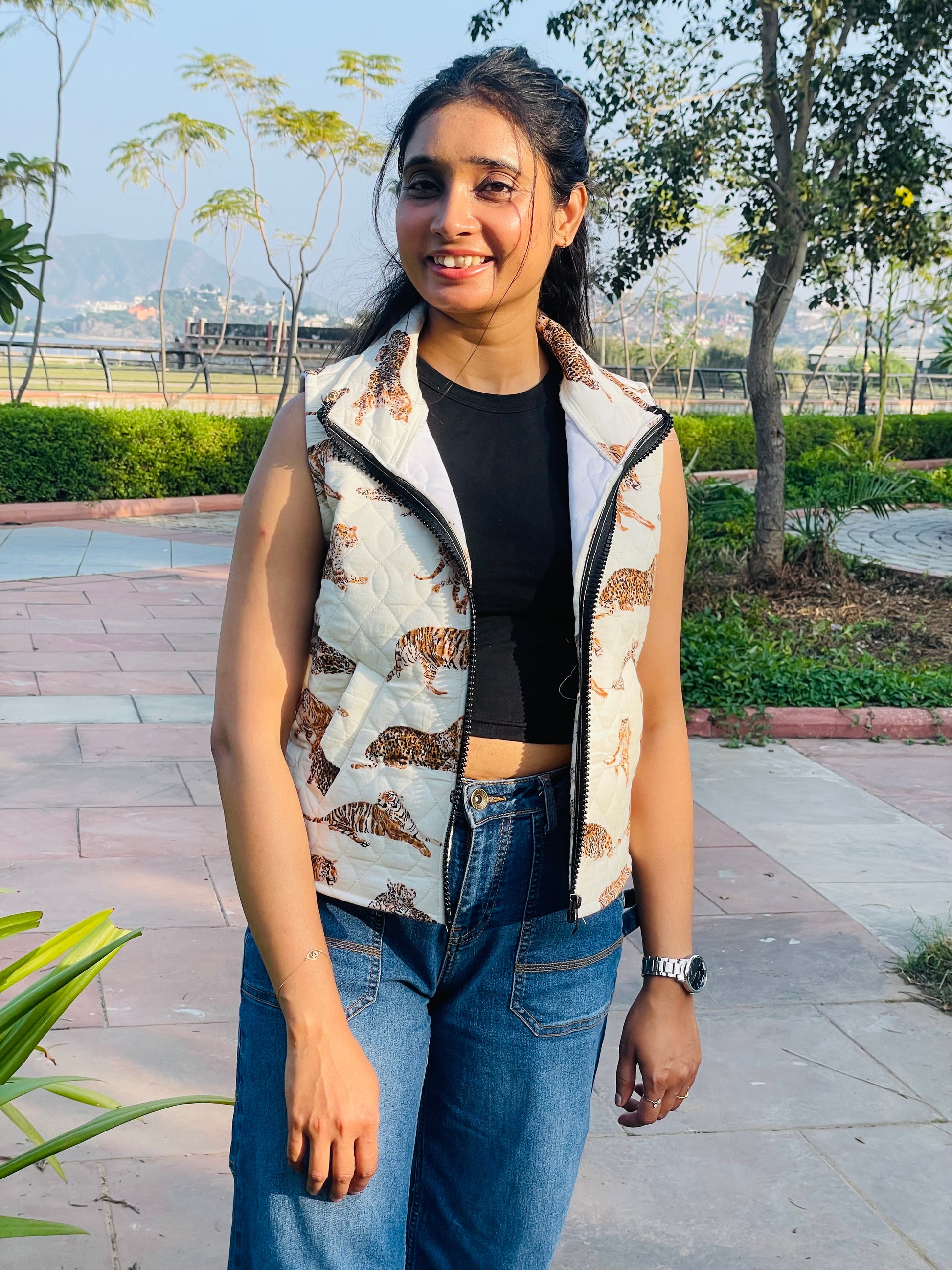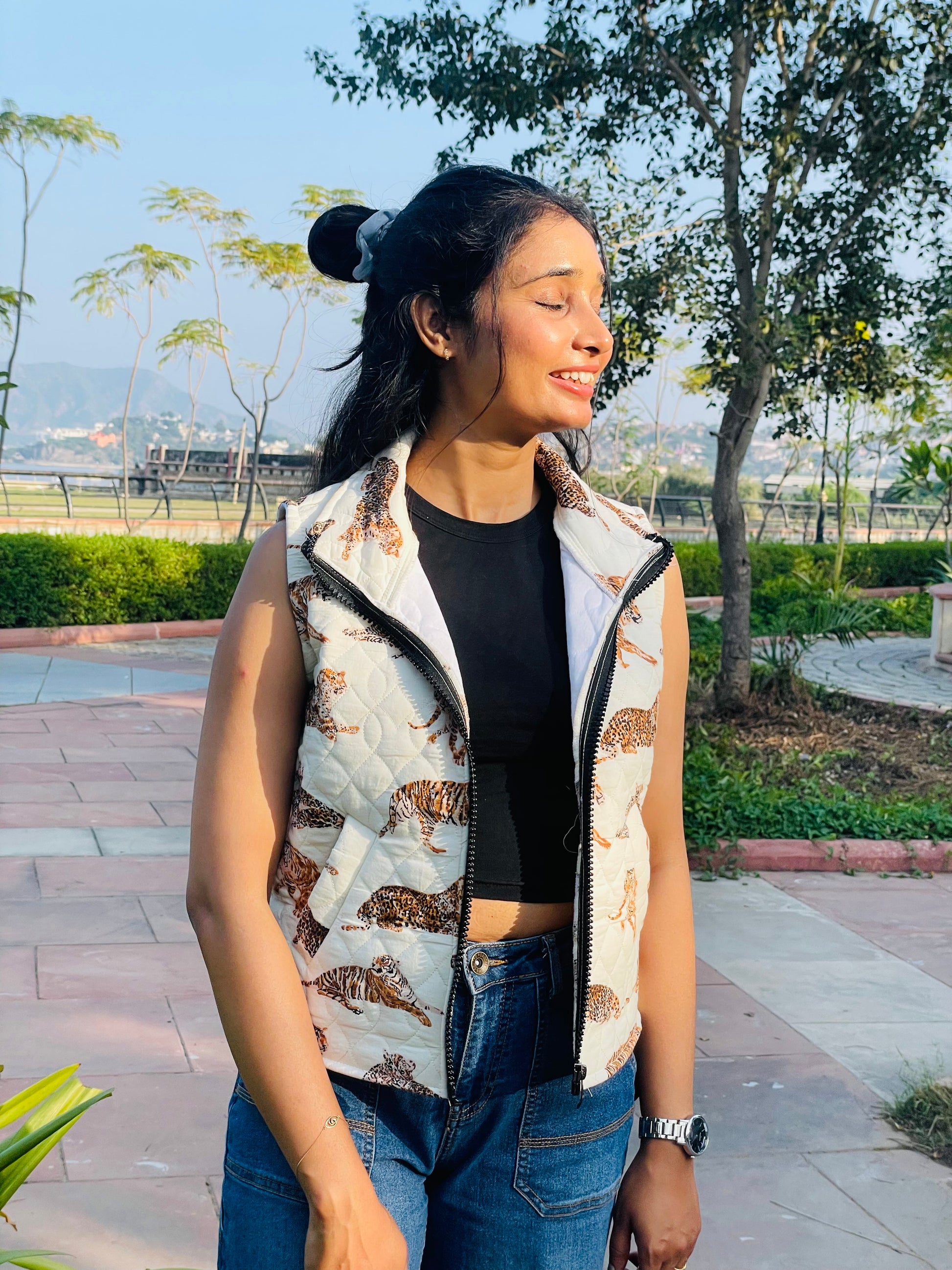 Crafted from soft and warm quilted fabric, this jacket is all about comfort with a touch of wild charm. The tiger print gives it a trendy and powerful vibe, while the front zip closure makes it easy to wear. It’s lightweight, cozy, and perfect for chilly days when you want to stand out.